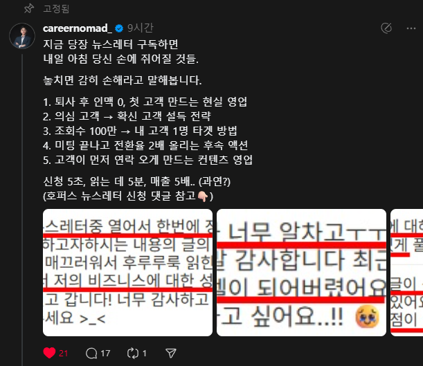 오늘 뉴스레터가 여러분만의 영업 매뉴얼 한 줄을 채우는 데 작은 힌트가 되었길 바랍니다.