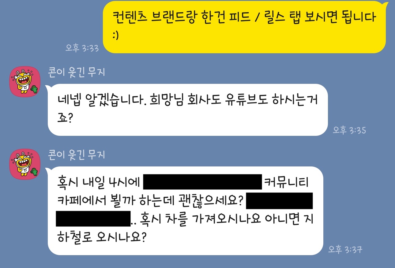 (제가 1인 마케터로서 케파가 꽉 차서 예~전 대표님 마케팅을 못봐드리게 돼서 친구인 대표를 소개해드렸지만, 저랑 꼭 하고 싶으시다고..ㅎㅎ) |