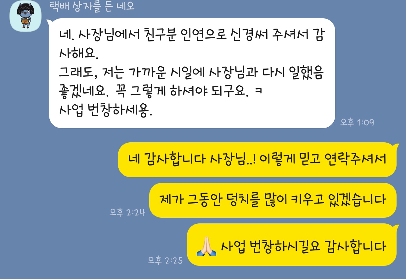 (저는 이렇게 타 업종 사장님들한테 현장 지식 배우는 거 좋아하거든요.) |