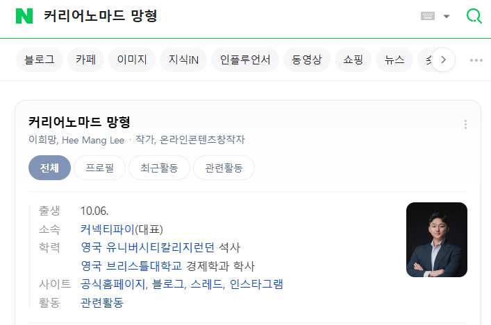 그리고 스스로 약속했던 2년이 지나고 드디어 저는... 제 이름을 꺼내기 시작했어요. [커리어노마드 망형]이라는 개인 브랜드와 [커넥티파이(Connectify)]라는 회사명을 함께 걸어뒀어요. 홈페이지도 만들었고, 오프라인 사무실도 얻었죠.