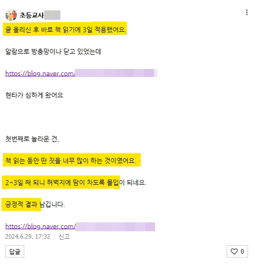 작년 블로그에도 썼던 내용인데, 이웃 중 한명이 실제로 실천까지 해서 긍정 후기도 남겨주셨어요. 이제 여러분 차례😏 |