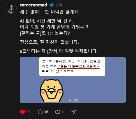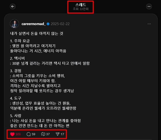 → 결국 이런 글들이 "이 사람은 어떤 기준으로 사는가?"를 보여져, 브랜딩 효과를 만들어내죠.