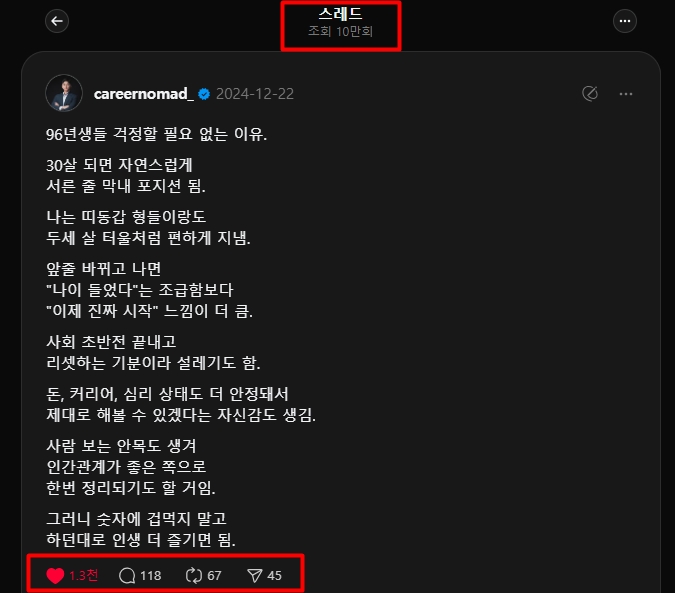 20대 후반~30대 초반 세대를 직접적으로 언급하면서 정체성 호출 한번 들어갔죠. 나이 기반 타겟팅은 팔로우 유도에도 강력하게 작용해요.