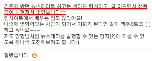이전 뉴스레터를 못 본 게 아쉽다는 말이 많았어요.