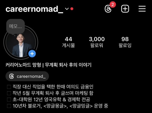 물론 기밀 정보나 민감한 내용은 조심해야겠지만, 공개 가능한 범위 안에서 업계의 흐름이나 작은 팁들을 공유해보세요. 그것만으로도 ‘업계 전문가’라는 브랜딩이 가능합니다. 게다가 스레드는 인스타그램이랑 연동이 되기 때문에 인스타 유저들도 눈팅은 다 하고 있어요. 좋아요는 안 눌러도, 기대감에 몰래 팔로우는 꼭 누르거든요.
