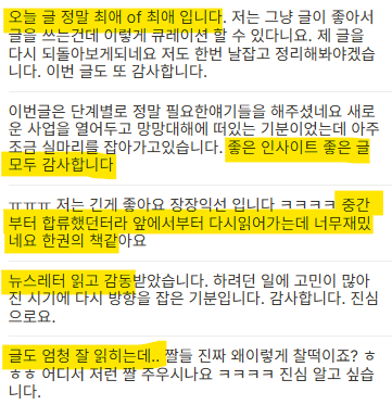 이전 뉴스레터를 못 본 게 아쉽다는 말이 많았어요.