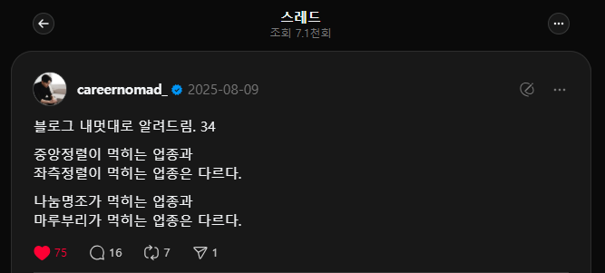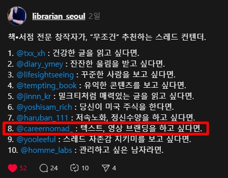 제 스레드를 보신 분들을 아시겠지만, 8월 9일부터 <글쓰기, 내멋대로 알려드림> 시리즈를 1~100편까지 연재하고 있었어요. |