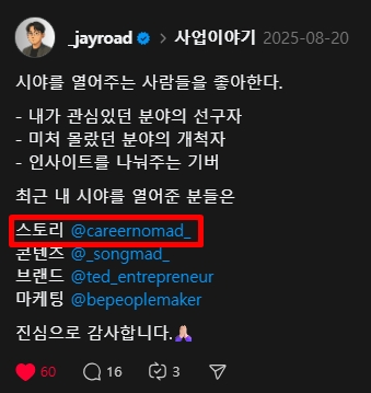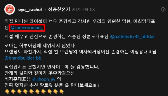 그리고 끝은 새로운 시작이기도 하죠. 당분간은 스레드, 블로그, 링크드인, 유튜브, 인스타그램 등 다양한 채널에서 더 자주, 더 가까이 찾아뵐 예정이에요.