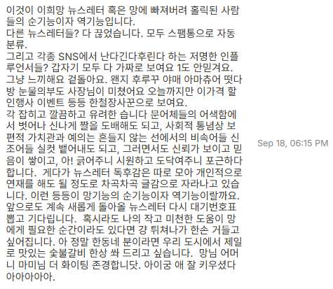 이전 뉴스레터를 못 본 게 아쉽다는 말이 많았어요.