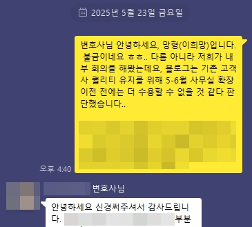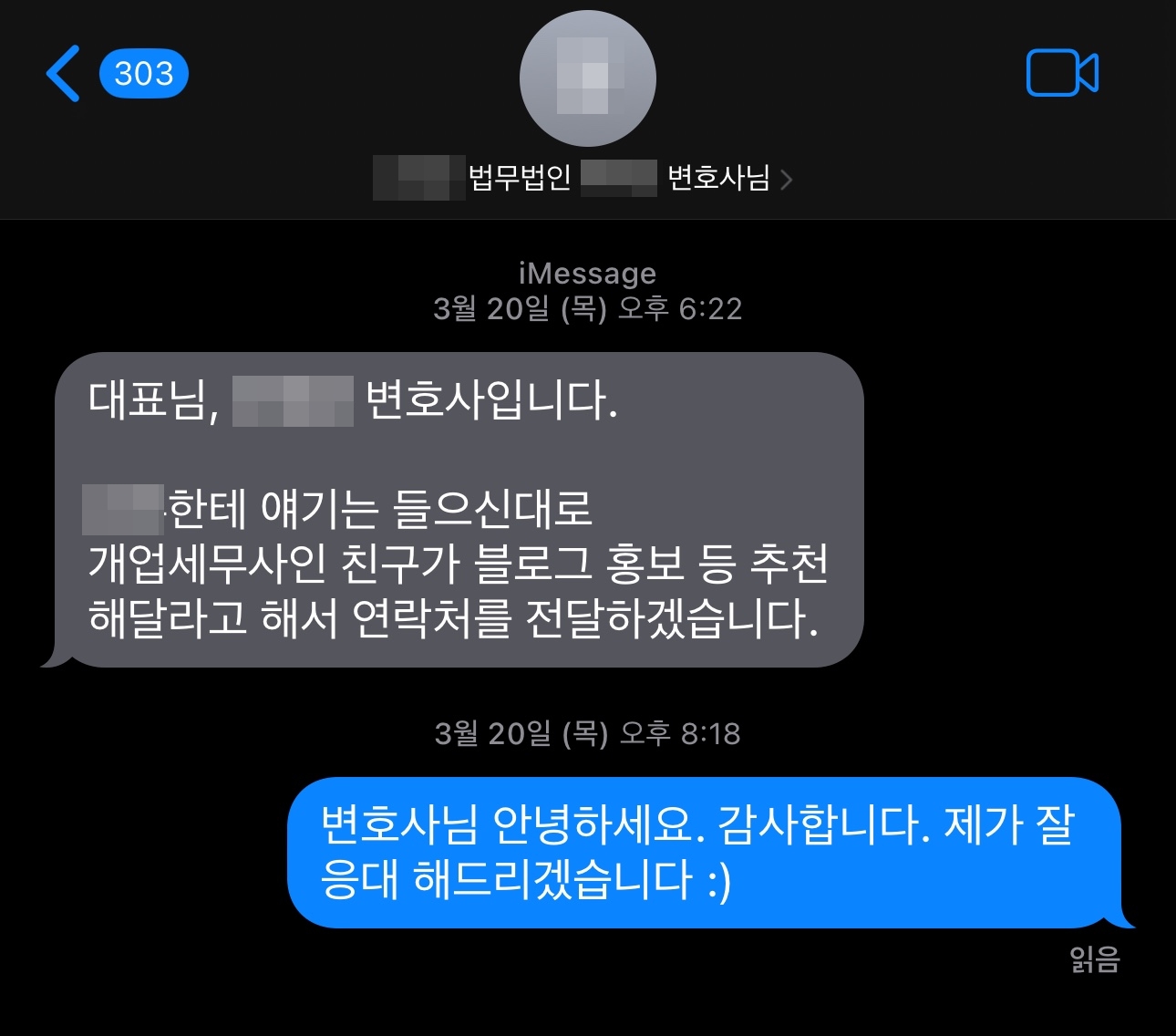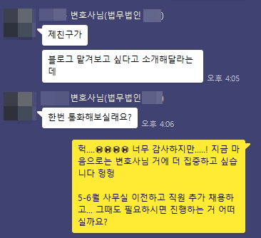 저도 실제로 대학 선배 소개로 변호사 한 분을 만나게 되었고, 제 블로그와 포트폴리오를 보신 뒤 바로 계약하자고 하셨습니다.