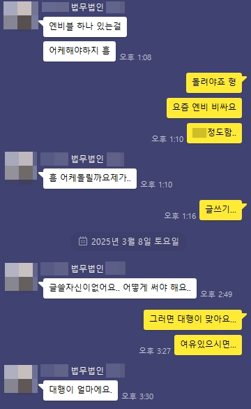 변호사, 세무사, 의사 등 전문직은 자연스럽게 전문직 친구들이 주변에 많습니다. 같은 변호사끼리는 경쟁 관계가 될 수도 있고, 작성할 키워드가 겹칠 위험도 있죠. 그래서 괜히 서로 조심스러워지는 경우가 많습니다.