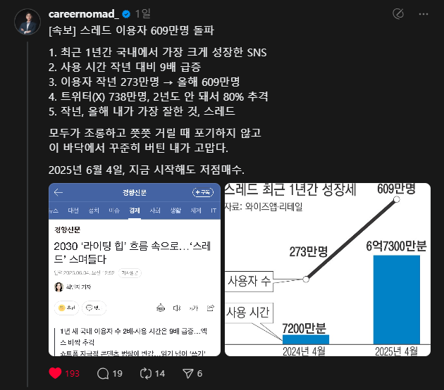 (아.... 진짜 스레드가 정말 노다지입니다 정말)