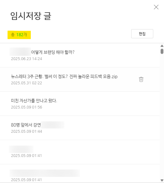 임시저장 글 182개면, 보고만 있어도 배가 부릅니다(?) |