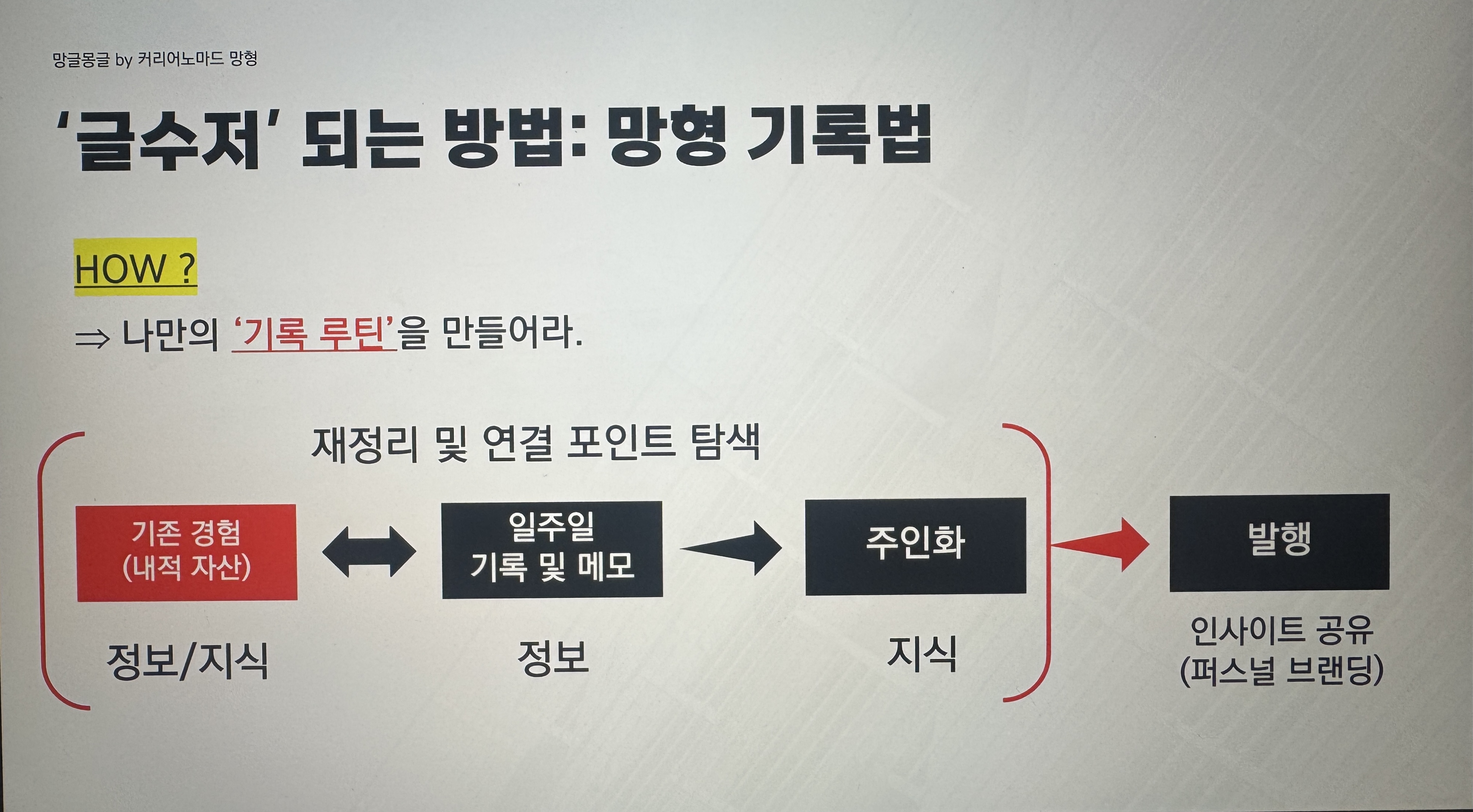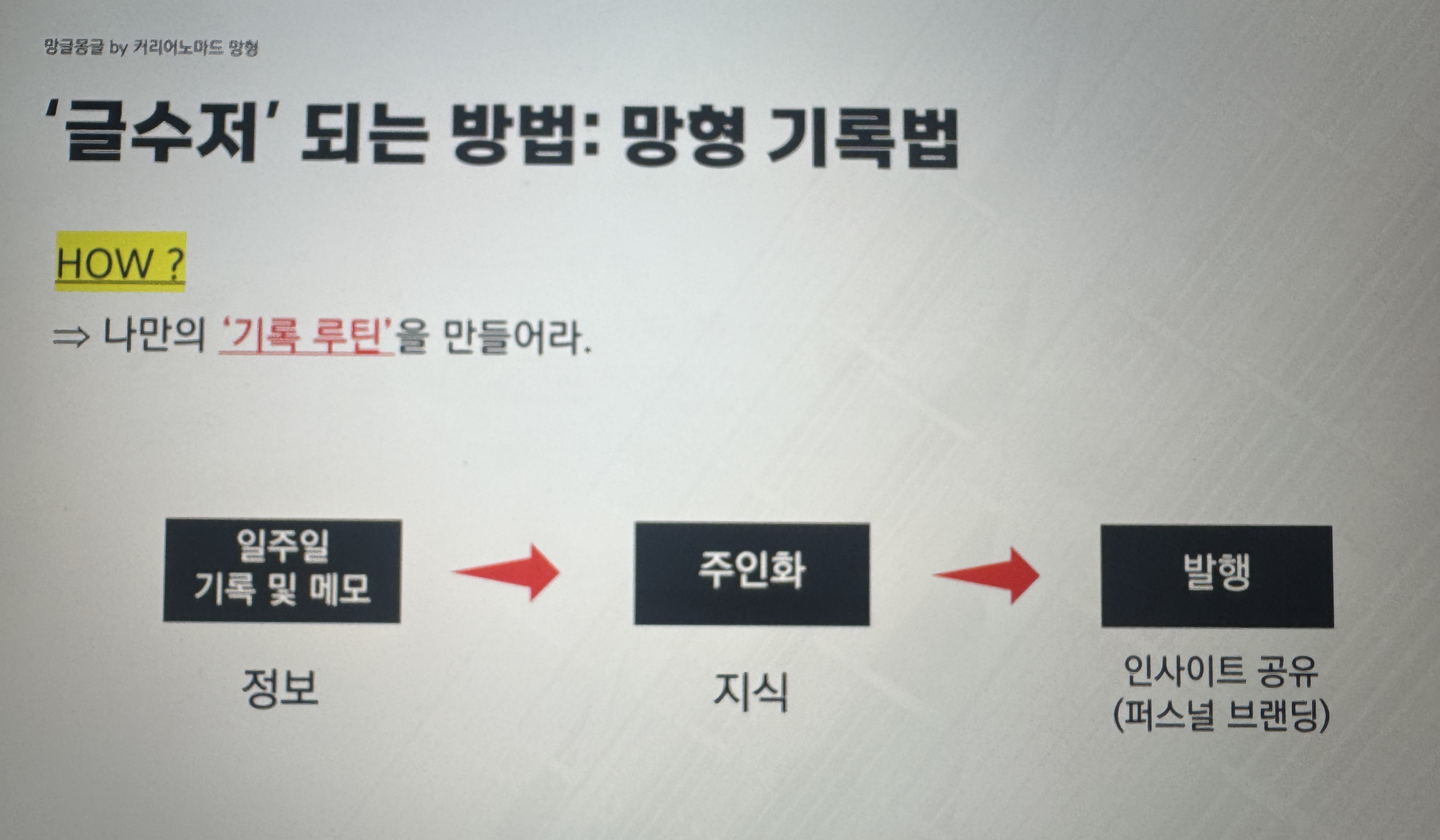 결국, '기록형 인간'이 되는 겁니다. 이건 스스로 의식 자체를 바꿔야 해요.