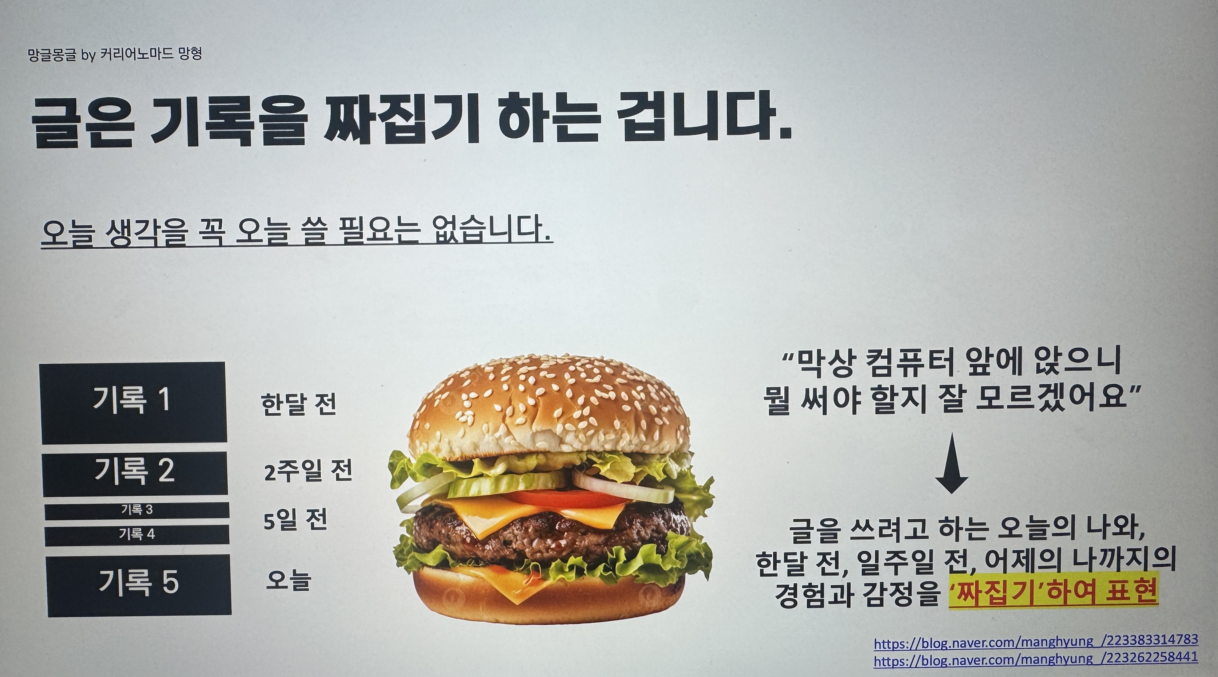 이런 것들이 쌓이다 보니, 자연스럽게 글감이 넘쳐나게 되더라고요. |