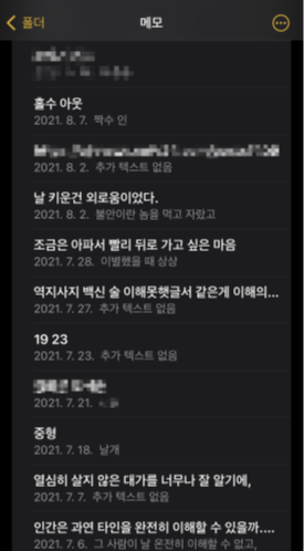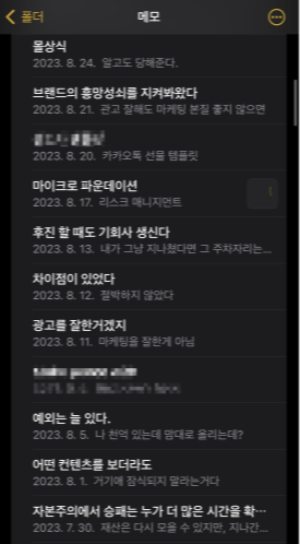 기록 도구가 여러 개면 오히려 흩어져서 나중에 찾기 어렵더라구요. 또, 여기저기 있으면 그걸 취합하는 것 자체가 귀찮아서 다 손 놓아버리게 돼요. 아이폰 메모든, 카카오톡 나에게 보내기든 한 군데에 몰아두세요.