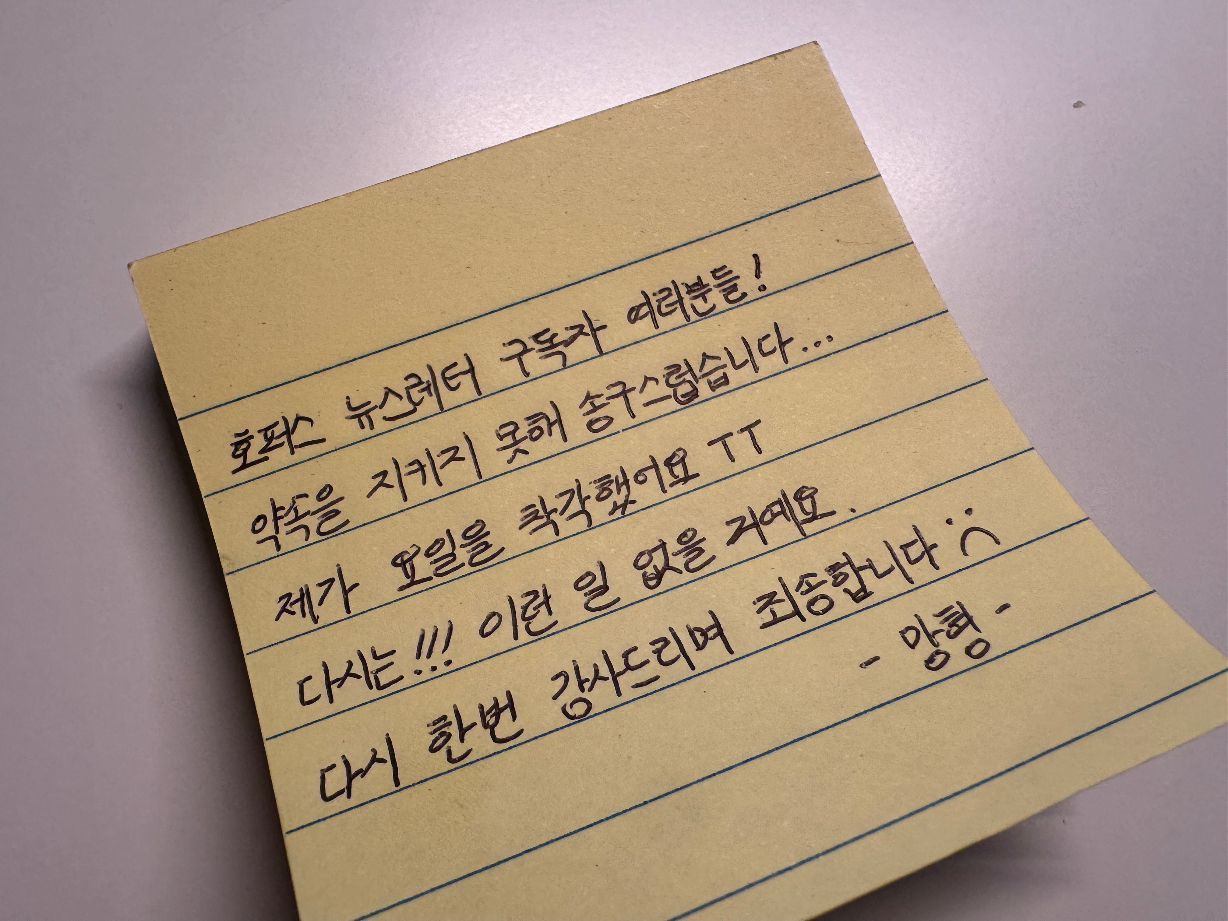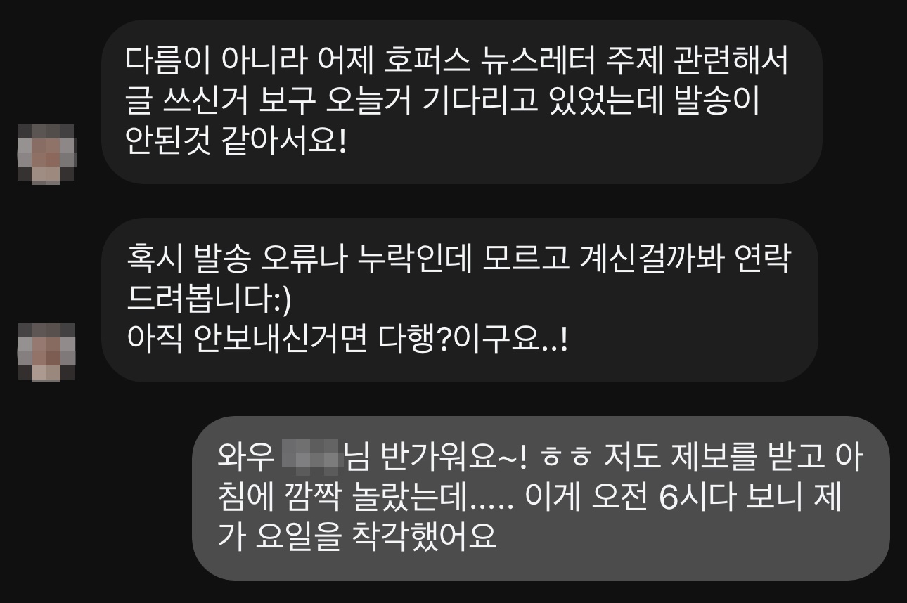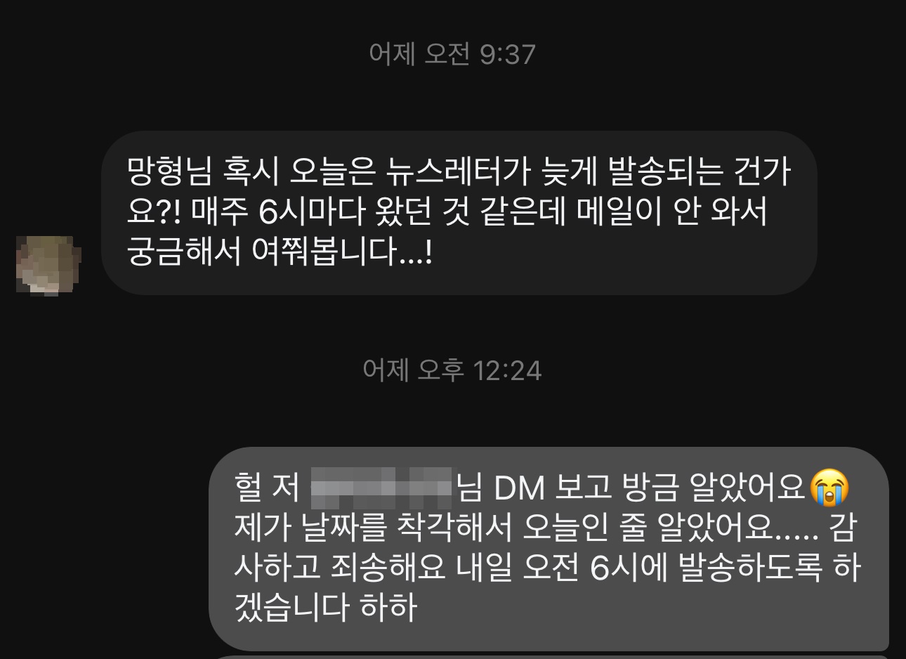 여러분... 진짜 큰 죄를 지었습니다. 그 죄란… 뉴스레터 요일을 혼동한 죄.