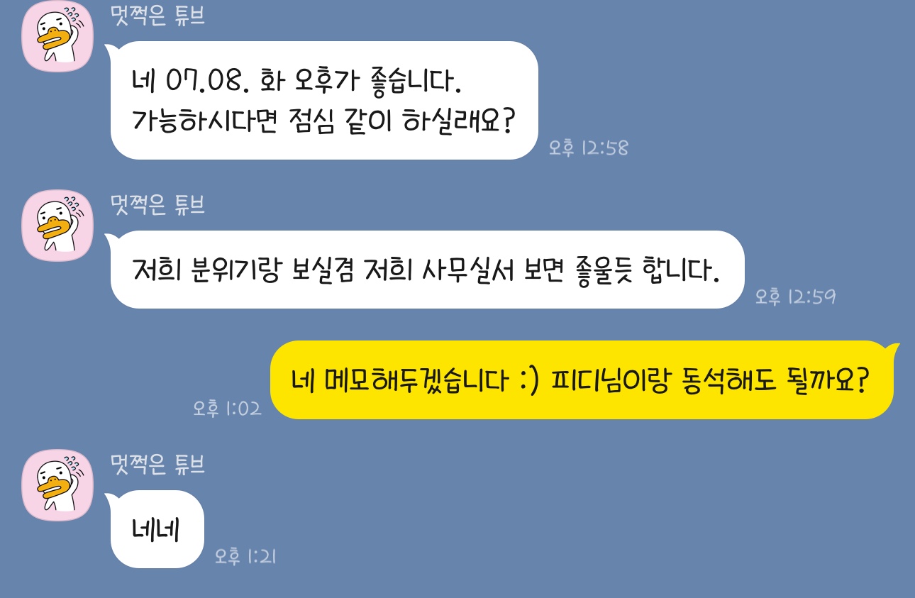 또 최근에는 추가 고객사를 모시고 있지 않았는데, 이번에 사무실 확장 이전을 하면서 훌륭한 분을 파트너로 모시게 될 수 있을 것 같아요. 8일 미팅이 기대 됩니다😊 좋은 결과 있으면 다음주 뉴스레터에서 소식 공유할게요.