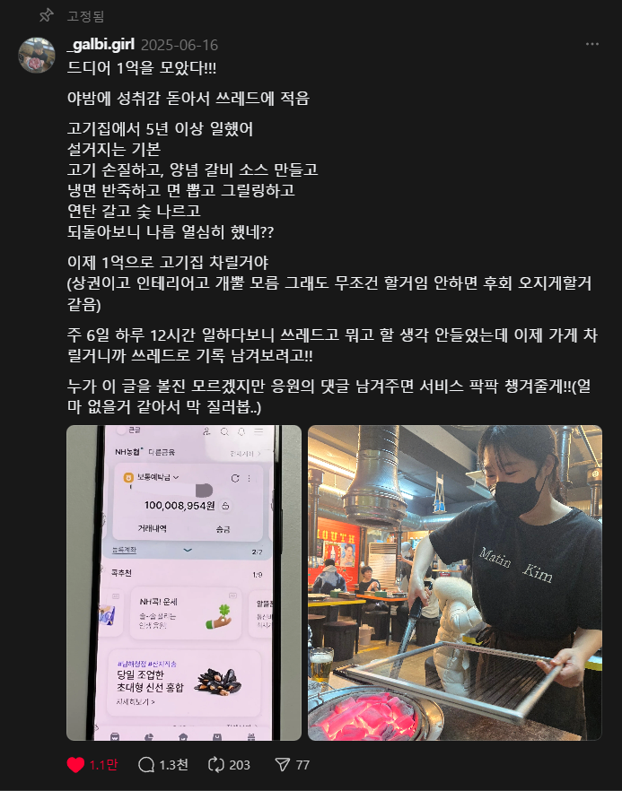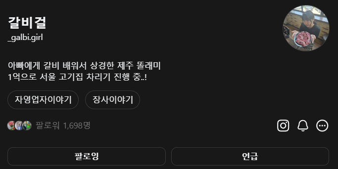 요즘 스레드에 갈비글을 좀 올렸더니, 알고리즘이 전국 갈비걸, 갈비보이로 한번 도배가 되더라구요. 역시 현존하는 SNS 플랫폼 중 가장 정교한 알고리즘을 보유한 스레드.....