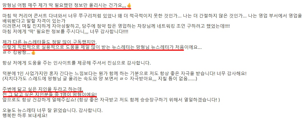 이전 뉴스레터를 못 본 게 아쉽다는 말이 많았어요.